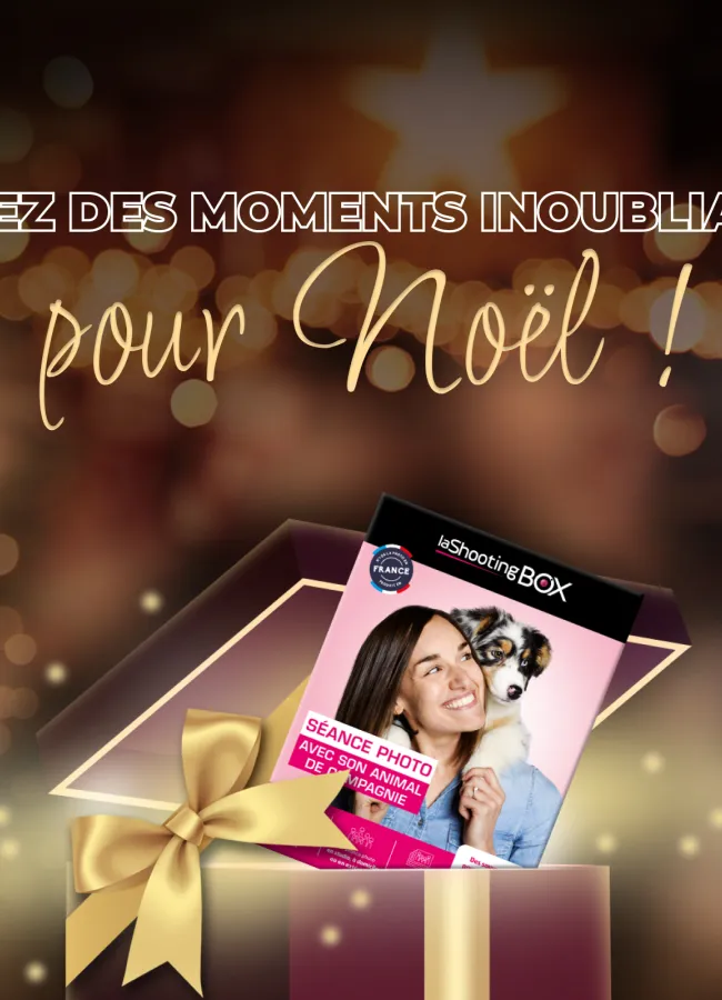 Offrez une séance photo professionnelle près de chez vous qui capture l’essence des occasions spéciales. Que ce soit pour un anniversaire, une grossesse, un moment avec son animal ou simplement pour célébrer la vie, nos coffrets cadeaux sont la promesse d’émotions capturées à jamais. Offrez l’inoubliable.